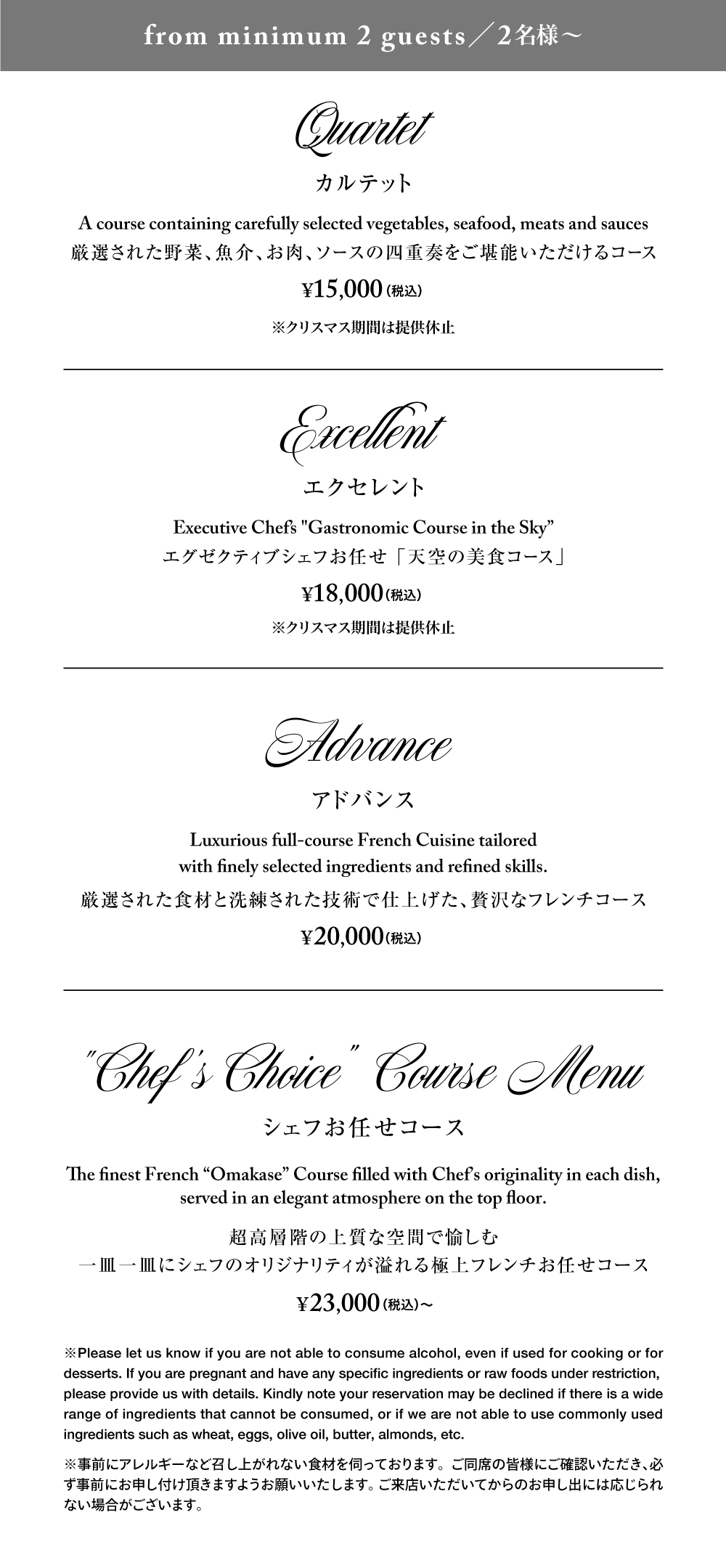 FRENCH PRIVATE DINING Mid Air Suiteフレンチプライベートダイニング「ミッドエアスイート」