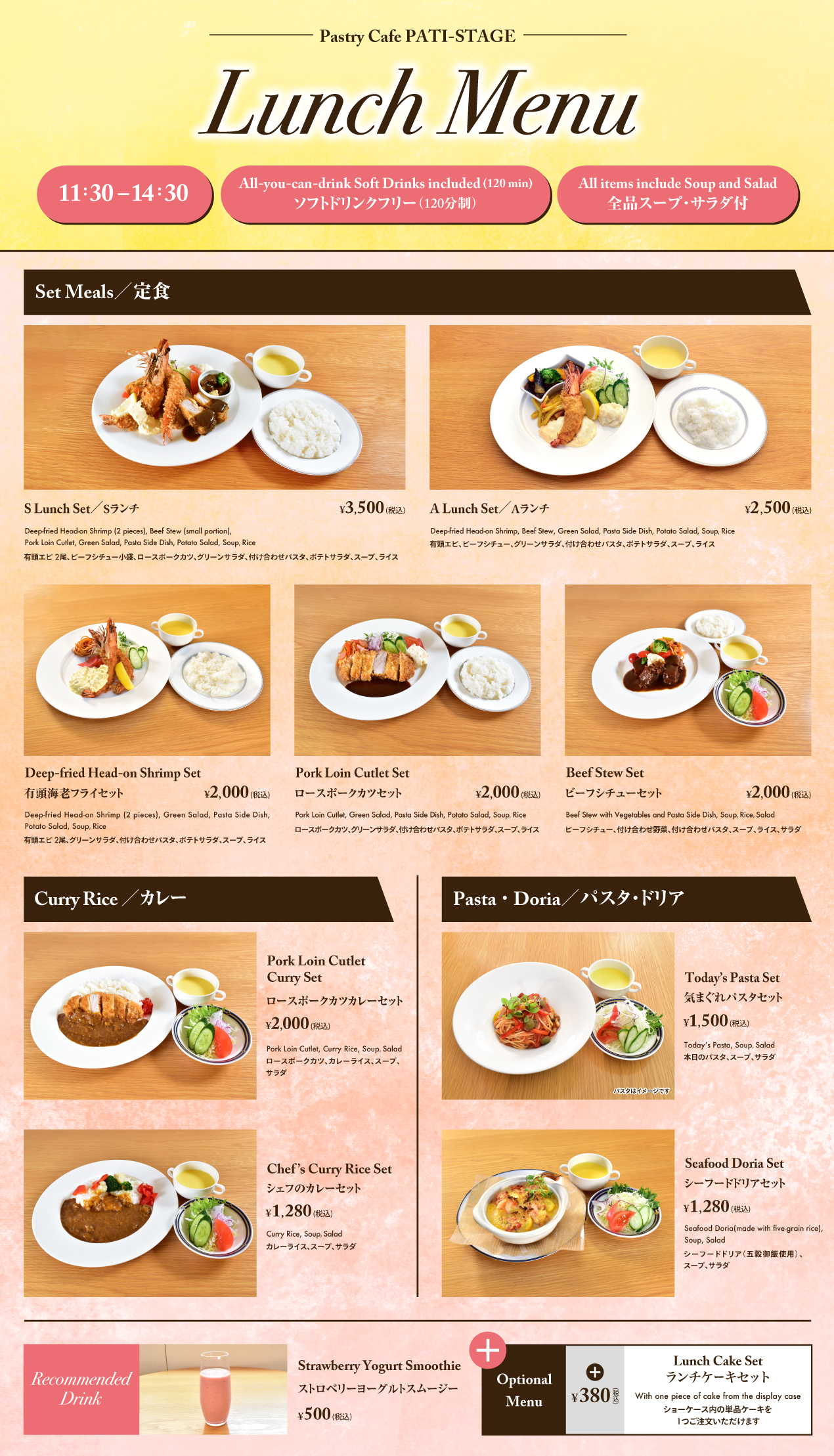 | ※ランチメニュー11:30〜14:30 臨時休業日:11月4、25日、12月28日、1月1〜4日 |